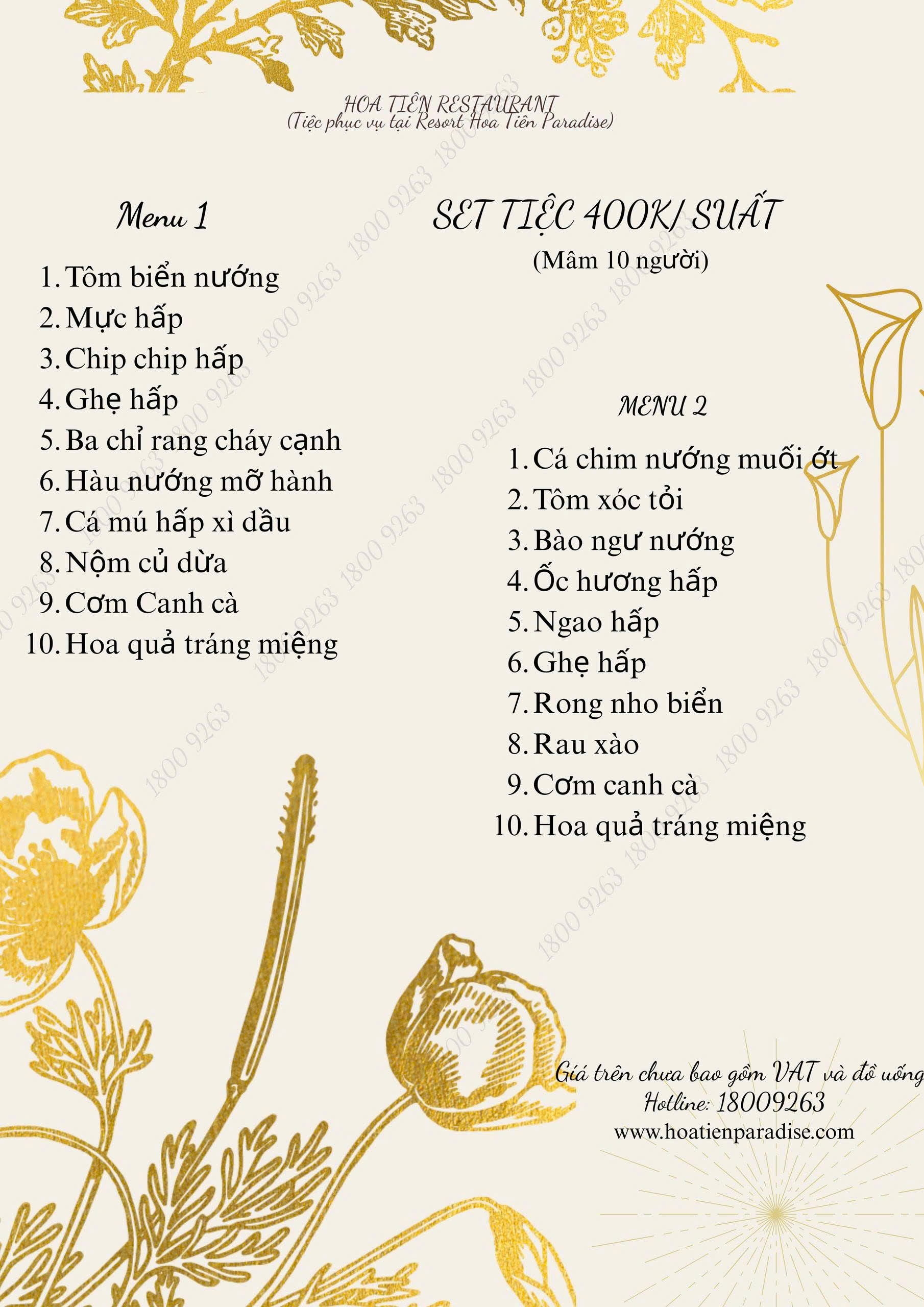 Menu 400K Mâm 10 Đăng vào 09/07/2025 bởi HOA TIÊN PARADISE HOA TIÊN PARADISE Bài viết liên quan Menu 250k Mâm 10 Th7 9, 2025 Menu Gọi Thêm Món Th4 9, 2025 Menu 500K Mâm 10 Th4 9, 2025